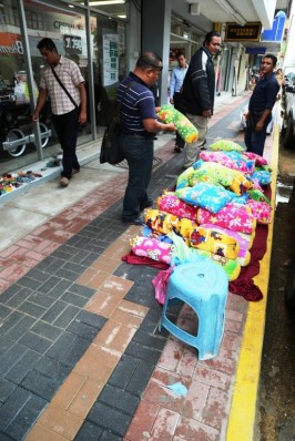 Les costará trabajo pretender sostener un paso, porque habrá huecos, armazones de venta de discos pirata, canastos de fruta, cajones con mangueras, plásticos o ropa, según lo que venda la tienda que ocupa la calle.