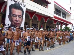 El ejército de hombres del campo, sus hombres de sombrero y las mujeres de rebozo y guaraches, en su eterna batalla, pero ahora acompañados de dos pancartas alusivas a un letrero que decía textualmente: «nos sometemos al juicio de la comisión de la verdad».