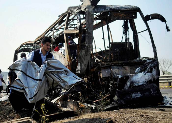 Era un autobús que transportaba turistas que habían iniciado su viaje en el vecino estado de Tabasco, que cruzaría tierras veracruzanas con rumbo a la ciudad de México, pero cuyo conductor, quizá cansado o harto de conducir tantas horas sin descanso, no se percató de un tráiler al que embestiría con las consecuencias por todos conocidas, en el sentido de que se incendió al estrellarse, muriendo quemados 36 usuarios, sin ninguna posibilidad de salvar la existencia.