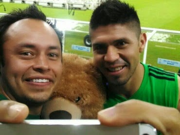 Pero eso no es todo, subió a su cuenta de Facebook fotos en donde se le aprecia en los estadios, en las gradas y hasta con jugadores de la selección nacional.