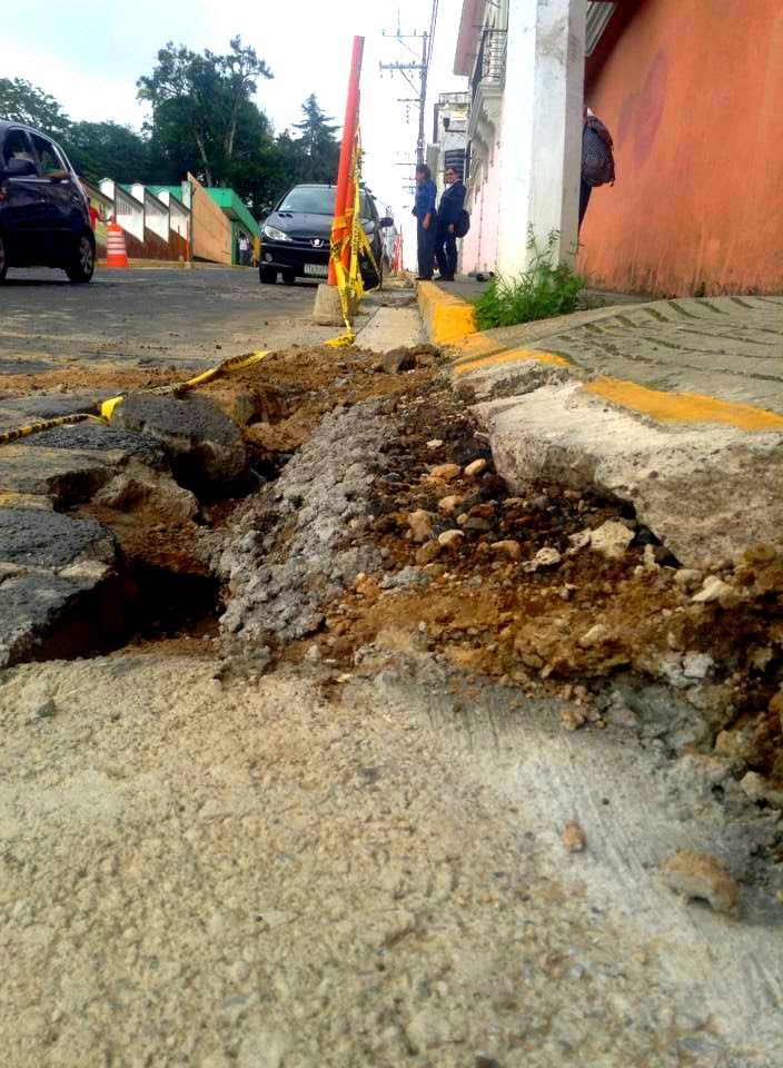 Las zanjas sobre las banquetas están abiertas y lógicamente representan un peligro para los peatones que tienen que subir o bajar por la calle Clavijero, incluyendo los niños de un jardín de niños y los pacientes que tienen que acudir a recibir atención la Cruz Roja.