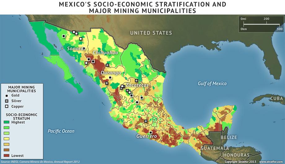 Un gran número de empresas trasnacionales, principalmente de Canadá, explotan el territorio nacional principalmente en las entidades de Sonora, Chihuahua, Durango, Zacatecas y Coahuila, cuyos periodos de gracia son de 50 años o más. La explotación principal es la relativa a la plata y el oro, con lo que las utilidades quedan en manos extranjeras.