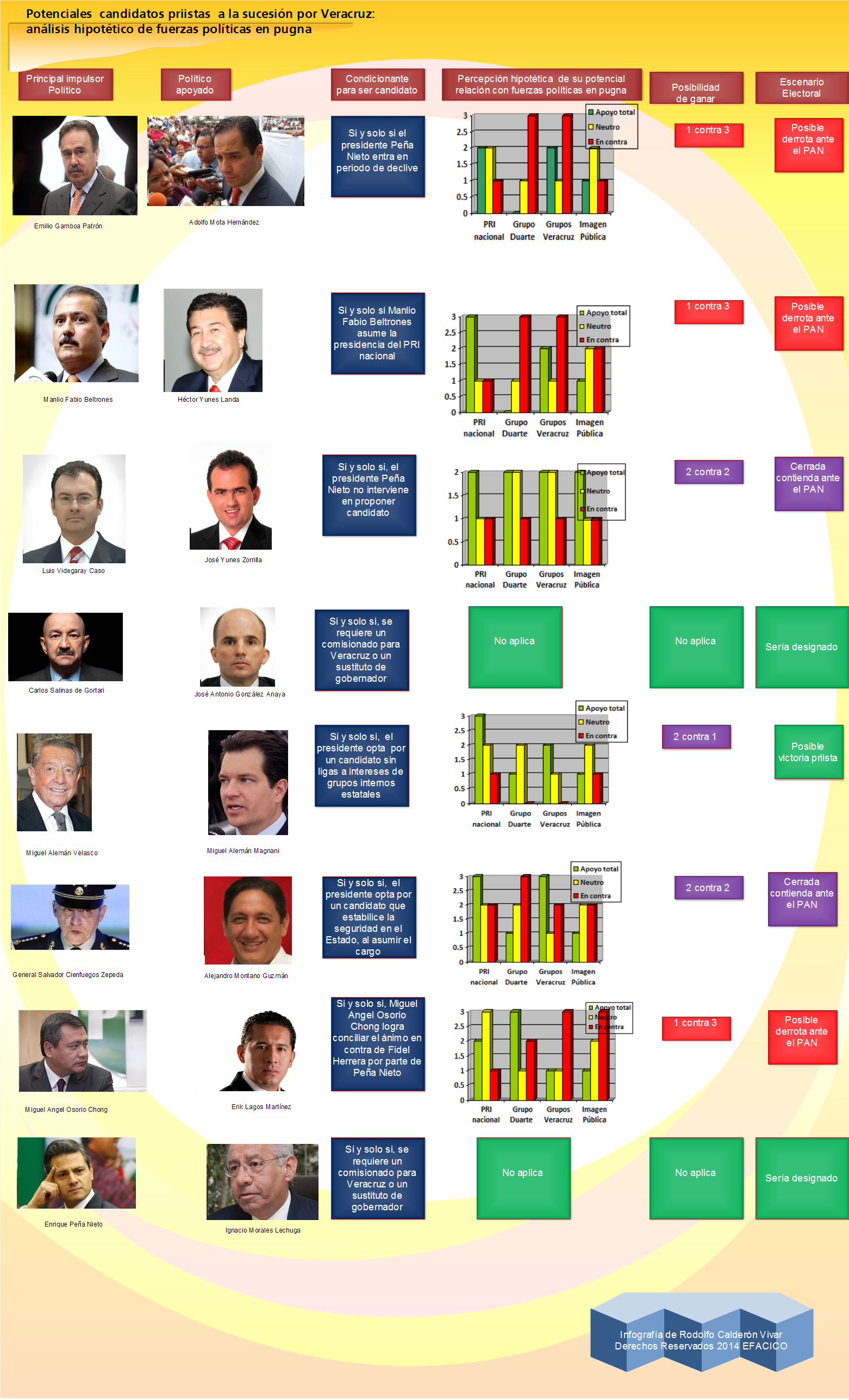 Potenciales candidatos priistas a la sucesión por Veracruz: Análisis de fuerzas políticas en pugna EfACICO19 Sep 201419 Sep 2014Infografía Navegación de entradas AnteriorSiguiente Infografía de Rodolfo Calderón Vivar Haga click, las veces necesarias, sobre la imagen para agrandarla mediante el zoom digital gráfico Por Rodolfo Calderón Vivar, egresado de la Facultad de Ciencias de la Comunicación de la Universidad Veracruzana Comparte en red esta información Haz clic para compartir en Facebook (Se abre en una ventana nueva) Facebook Haz clic para compartir en Pinterest (Se abre en una ventana nueva) Pinterest Haz clic para imprimir (Se abre en una ventana nueva) Imprimir Haz clic para enviar un enlace por correo electrónico a un amigo (Se abre en una ventana nueva) Correo electrónico Haz clic para compartir en LinkedIn (Se abre en una ventana nueva) LinkedIn Haz clic para compartir en Tumblr (Se abre en una ventana nueva) Tumblr Haz clic para compartir en Reddit (Se abre en una ventana nueva) Reddit Haz clic para compartir en Pocket (Se abre en una ventana nueva) Pocket Haz clic para compartir en WhatsApp (Se abre en una ventana nueva) WhatsApp Me gusta Cargando... Relacionado