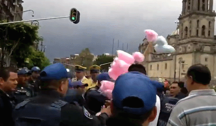 Vendedor de algodones de azúcar es arrestado por la policía del DF, para que no actúe como delincuente