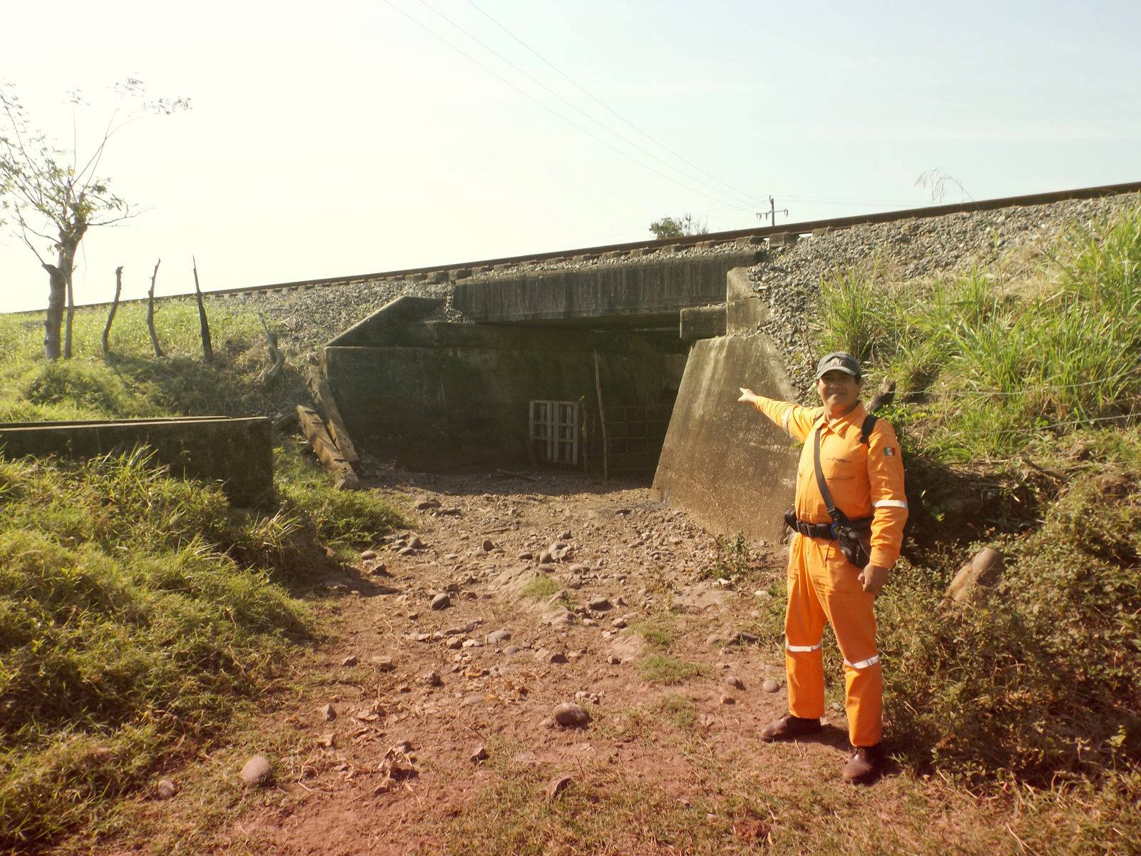 Mario Jesús Gaspar Cobarrubias, egresado de la Facultad de Ciencias y Técnicas de la Comunicación de la Universidad Veracruzana¡Feliz día! Viajamos de Veracruz hasta la localidad de Los Robles, perteneciente al vecino municipio de Medellín de Bravo y cruzado por la vía del Ferrocarril hacia Alvarado. Estamos aproximadamente a 26 kilómetros lineales del Centro Histórico de Veracruz. Nos internamos por un camino de terracería junto al canal casi seco de un arroyo, el ferrocarril lo cruza por encima gracias a una alcantarilla de losa plana y muy fuertes materiales.Estamos aquí para documentar un pequeño puente o alcantarilla de piedra y arco, que le comentaron a don Victor Hernandez aún existía aquí. Nos adentramos 116 metros al norte de la alcantarilla ferrocarrilera, hasta llegar al cruce de ambas orillas del arroyo, pero descubrimos que no existe ya la arcada, sino un puente de losa plana de 6.50 metros de longitud.. Caben 2 posibilidades: 1) Que no estemos en el sitio correcto y 2) Que haya sido destruida o remodelada con un formato más moderno de losa plana, para cubrir las necesidades de los habitantes.No obstante, el viaje no se desperdicia: regresamos paralelos a la vía en dirección sureste y hallamos los restos desguazados de un vagón de carga. Y más adelante, ya fuera de la vía, uno de los vagones más emblemáticos de los ferrocarriles americanos y europeos de los siglos XIX y XX: el llamado furgón de cola o Cabúz. Este es un cabúz modelo de Cúpula Central o Estándar, mide más de 11 metros de largo y 3.10 de ancho, con madera y hierro forjado. El color amarillo que les caracteriza en el siglo XX, servía para indicar que pasando el mismo, los automóviles podían pasar el cruce de la vía del ferrocarril.Mi área de estudio histórico abarca las antiguas vías de comunicación, por lo que divido mi tiempo entre los caminos reales, ferrocarriles y navíos. Abordamos el Cabúz o CABOOSE, nombre que es muy posiblemente una degeneración del término naútico francés ya obsoleto CAMBOSE o CAMBOOSE, que describe la cabina de preparación de alimentos en la cubierta principal del buque y que adoptado por los norteamericanos desde la época de su Revolución de las Trece Colonias (1775-1783). Los primeros furgones de cola eran chozas de madera levantadas sobre vagones planos en la década de 1830, habrían asemejado el cocinero choza en la cubierta relativamente plana de un barco.Mi área de estudio histórico abarca las antiguas vías de comunicación, por lo que divido mi tiempo entre los caminos reales, ferrocarriles y navíos. Abordamos el Cabúz o CABOOSE, nombre que es muy posiblemente una degeneración del término naútico francés ya obsoleto CAMBOSE o CAMBOOSE, que describe la cabina de preparación de alimentos en la cubierta principal del buque y que adoptado por los norteamericanos desde la época de su Revolución de las Trece Colonias (1775-1783). Los primeros furgones de cola eran chozas de madera levantadas sobre vagones planos en la década de 1830, habrían asemejado el cocinero choza en la cubierta relativamente plana de un barco.