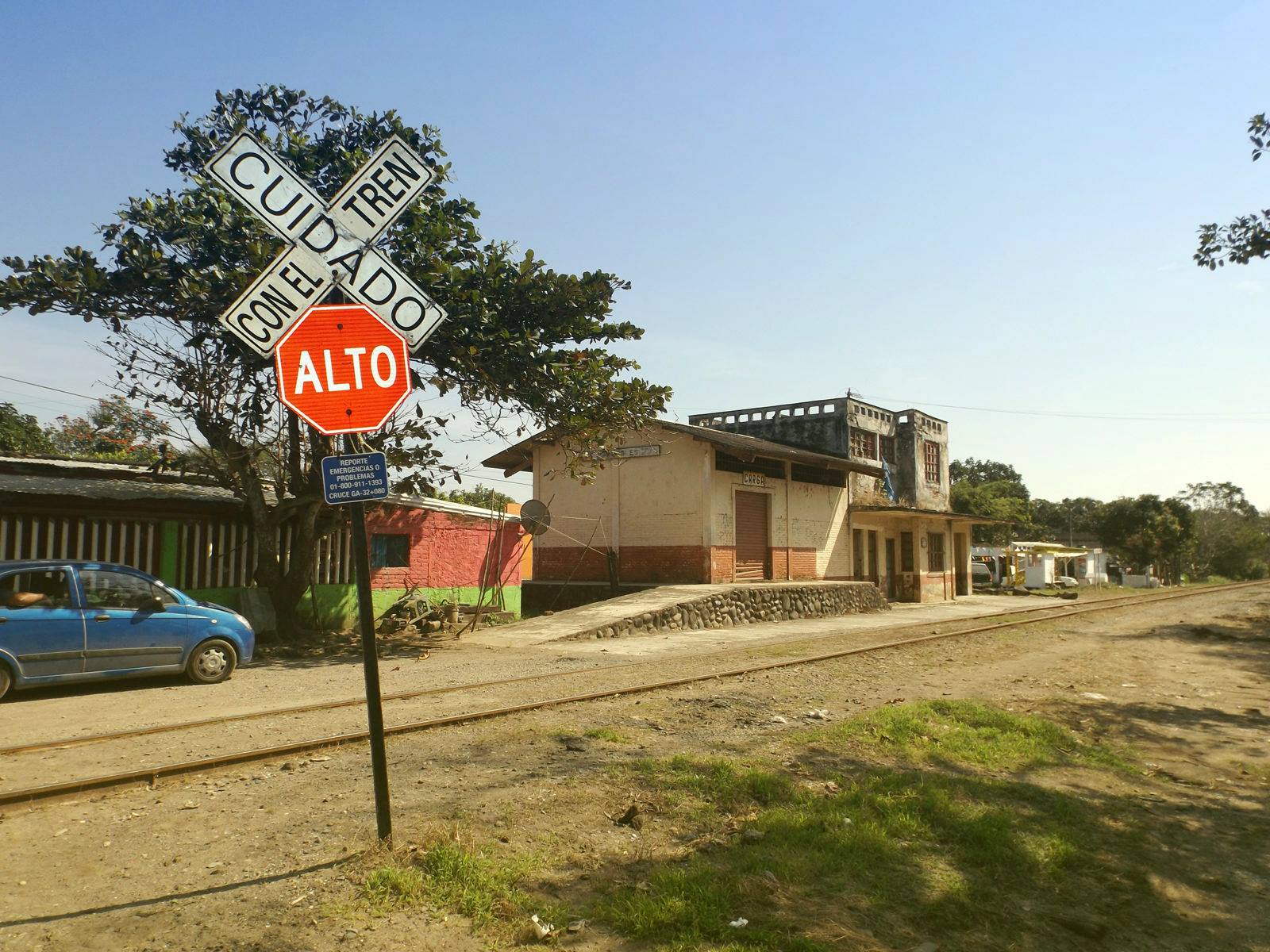 A 210 metros del Cabúz abandonado, se encuentra la estación ferrocarrilera de Los Robles. Su letrero indica que se localiza a 278.6 kilómetros de la estratégica estación de Medias Aguas. Esta se localiza en el sur del municipio de Sayula de Alemán: por su posición geográfica es un importante punto de comunicación de ferrocarriles, encontrándose en la población en empalme entre el Ferrocarril Transístmico de Sayula de Alemán a Matías Romero en sentido norte-sur. Y el que partiendo desde ese punto lleva hacia el noroeste hacia Tuxtepec y finalmente a Córdoba. Es también un punto de tránsito de migrantes que desde Centroamérica tratan de alcanzar la Frontera entre Estados Unidos y México.Como tantas otras estaciones de los diferentes ferrocarriles mexicanos, la de Los Robles, se halla abandonada, aunque su arquitectura moderna del siglo XX y la limpieza que recibe, dan la apariencia de un aceptable estado de conservación. Se visualiza el anden y bodega de carga, las oficinas, taquilla, arriba un piso-habitación y a la derecha, un espacio que ahora ocupan para estacionar vehículos particulares. La estación ocupa un área de aproximadamente 202.05 metros cuadrados y conserva en sus muros los colores rojo y amarillo, clásicos de la época ferrocarrilera.El deterioro se manifiesta muy claramente en la planta baja, donde los sanitarios abiertos y sin sus puertas, la pintura deteriorada sobre las hiladas de ladrillos. Desde la supresión del ferrocarril de pasajeros en la década de 1990, el patrimonio nacional de los ferrocarriles mexicanos ha sufrido una rápida destrucción física, a pesar de los esfuerzos de instituciones y ciudadanos comprometidos con su preservación para las futuras generaciones.