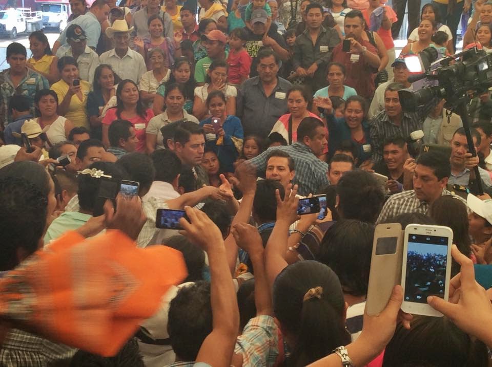 Entonces, esa alegría fue compartida también por el gobernador Javier Duarte de Ochoa, quien también fue salpicado por el baño de pueblo y caminando unos metros por delante del presidente Peña, se tomaba la foto y se dejaba apapachar por quienes aguardaban al ejecutivo.