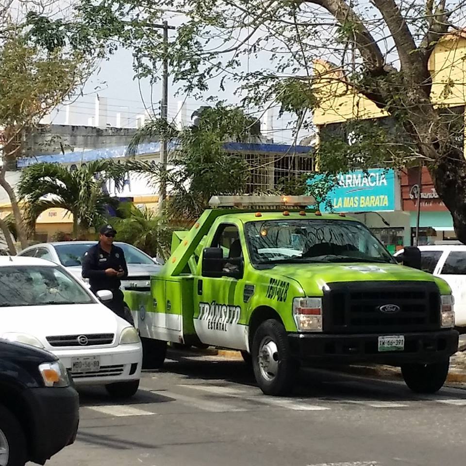 Ladrones vestidos de verde (Tránsito del Edo), con la autorización del Gobierno del Estado trabajan en la avenida Cristóbal Colón en el puerto de Veracruz.