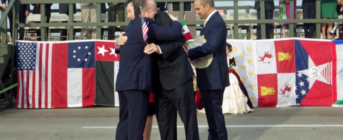 ABRAZO.- Bajo un ambiente tenso, en la parte mexicana, por el revés a la medida migratoria del Presidente Barack Obama, que afecta a cuando menos 5 millones de mexicanos indocumentados en los Estados Unidos, se realizará este sábado la tradicional ceremonia del “Abrazo Internacional” México-EU. La ceremonia se efectuará a las ocho de la mañana a mediación del puente internacional Juárez-Lincoln de Laredo, Texas. Es con motivo de los festejos del 118 aniversario del natalicio de George Washington. Pro primera vez se encontrarán y abrazarán los alcaldes Carlos Canturosas Villarreal, de Nuevo Laredo, y su anfitrión de Laredo, el recién estrenando Alcalde (Mayor) Pete Saenz. La invitación fue hecha en tiempo a los gobernador de Texas, Nuevo León, Coahuila y Tamaulipas pero ninguno confirmó asistencia. Si acaso mandarán un representante. No más. Como quiera e innegable el lazo de amistad y vecindad entre los dos Laredos.