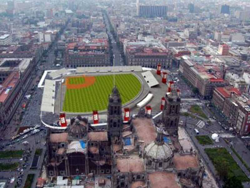 Sin duda alguna, llama la atención que el Zócalo capitalino será la primer plaza del mundo en convertirse en un diamante verde de béisbol.