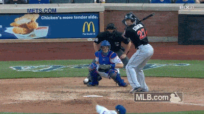 • El power de Giancarlo Stanton, de los Marlins de Miami: ayer llegó a 26 jonrones, líder en la Nacional; la bola viajó más o menos a 484 pies del plato. Chulada de tablazo.
