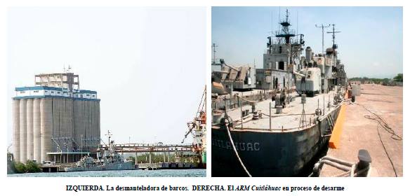 Precisamente, el avanzado daño en su casco obligó a que el barco fuera llevado a la deslizadora que se ubica a unos 200 metros de donde el ARM Cuitláhuac permaneció por más de tres años en espera de un destino público como museo, pero acabó siendo desguazado para aprovechar sus más de 2.000 toneladas de acero.
