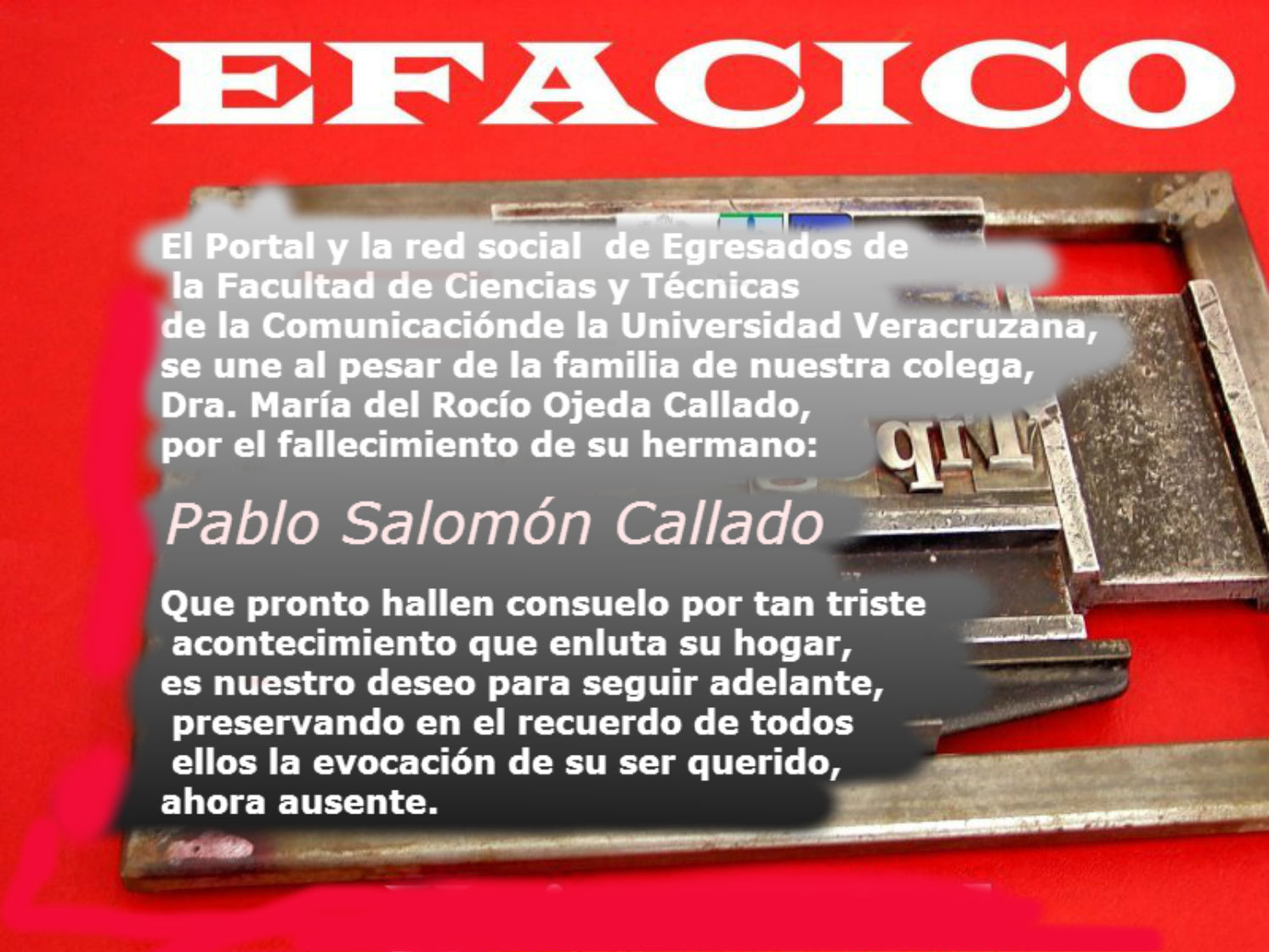 Nuestra pésame a nuestra colega, María del Rocío Ojeda Callado