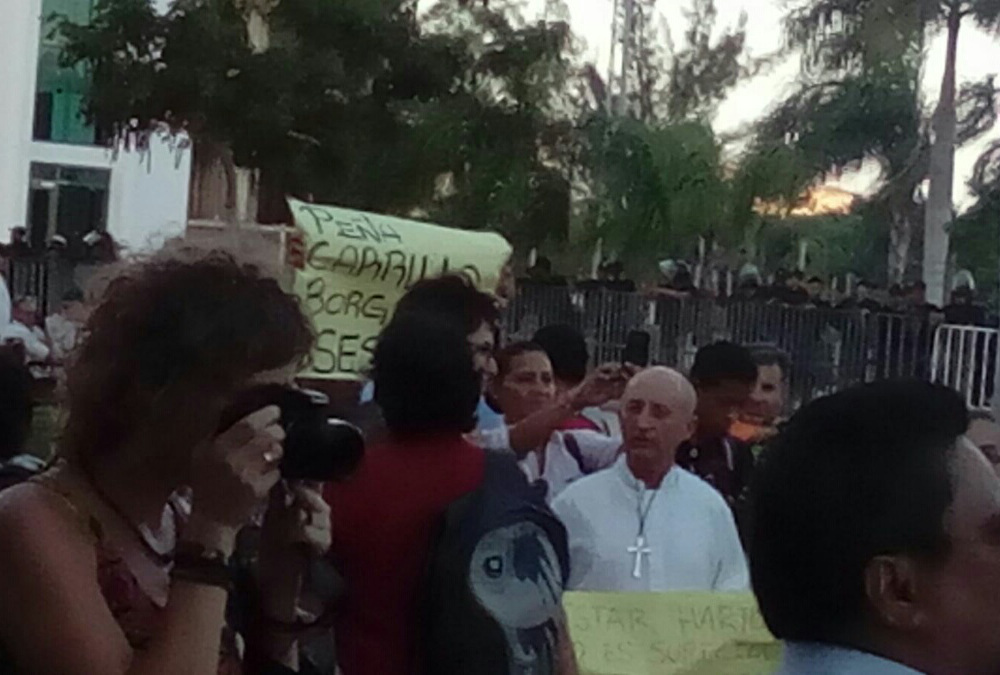 En la banqueta, el sacerdote que se ha enfrentado en distintos momentos a los obispos Raúl Vera de Coahuila y Pedro Pablo Elizondo de Quintana Roo, responde a las aspiraciones gubernamentales del edil de Solidaridad, Mauricio Góngora y del diputado federal, José Luis Chanito Toledo