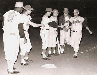 Precisamente, en aquel 1954, jugando en Los Mochis, con Obregón/Liga de la Costa del Pacífico, produjo ¡once carreras! con dos grand slams, cifra récord de impulsadas que al año siguiente empató Ángel Castro. Sus dos históricos obuses se los pegó a Ted Thiem y Miguel Sotelo. “En el último turno volví a tener caja llena y di foul al catcher. También pegué un doble y sencillo”, recuerda siempre el gran empalmense.