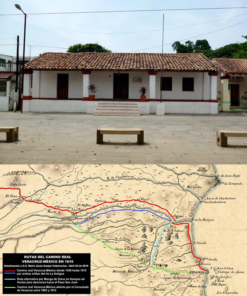 A partir de 1530, Martín López a encargo de Hernán Cortés comenzó a construir el camino real entre México y Veracruz, cruzando por Veracruz La Antigua, pues su aduana recibía productos no solo de la costa sino de las poblaciones y rancherías cercanas; finalizando frente a San Juan de Ulúa, cuyo muelle fue edificado a partir de 1524. Para 1565, en tiempos del virrey Gastón de Peralta del Bosquete, marqués de Falces, ya se estaba construyendo un camino real hacia Xalapa por la orilla derecha del río La Antigua.