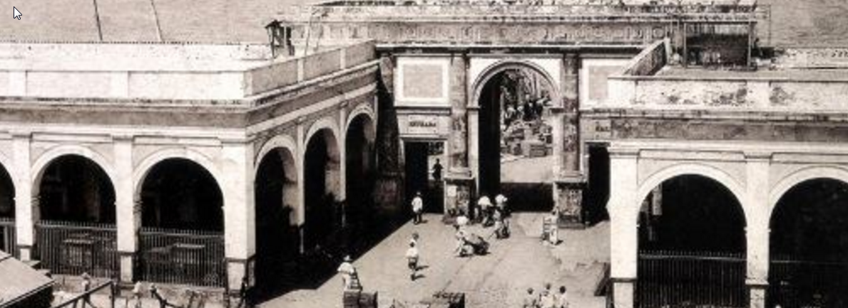 Vista cercana de la Puerta de Mar en 1885, con sus columnas del órden dórico (Fuente: http://www.xeu.com.mx/blogs/post.cfm?id=392)