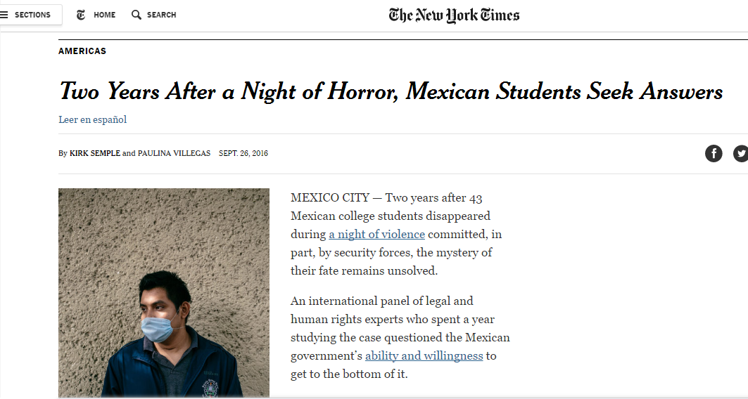 El New York Times ha sido muy incisivo. Con espléndidos reportajes sobre la vida cotidiana de México, presenta un trabajo relacionado con las mujeres que fueron violadas en Atenco y su testimonio es sencillamente desgarrador. Son historias de vida que estremecen y marcan el cambio abrupto de una vida al ser violadas y torturadas por la policía del Estado de México, siendo entonces gobernador Enrique Peña Nieto.