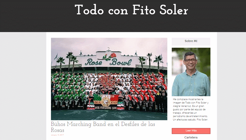 Felicitamos a nuestro compañero de generación y periodista espectacular, Fito Soler, quien a partir de este mes estrena su nueva página «Todo con Fito», en un concepto editorial multimedia que, estamos seguros, dará mucho de que hablar de aquí en adelante, en el ámbito de sus lectores constantes, y que está situado en la dirección: http://www.todoconfitosoler.com/