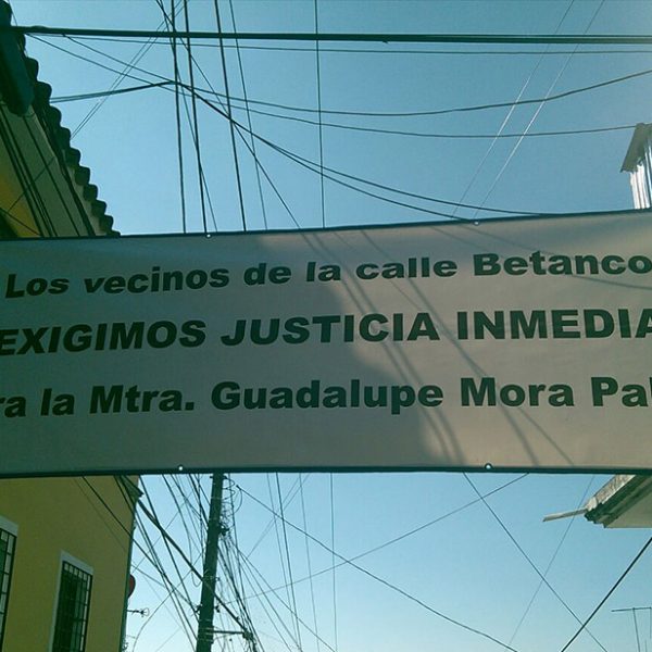 Mientras, los vecinos de la calle Betancourt, del centro de la ciudad, se manifestaron al son de: “No queremos vivir con miedo” y urgen al fiscal general del estado y a las autoridades municipales para que resuelvan el homicidio de la maestra jubilada, Guadalupe Mora Palacios, cuyo cadáver fue embolsado y encontrado en el interior de su domicilio, ocurrido el 10 de noviembre pasado.