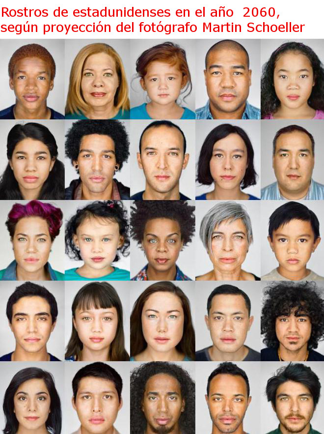 La Oficina de Censo de Estados Unidos en 2012 publicó sus proyecciones, hace visible que la población blanca no hispana llegue a su máximo en 2024, con 199.6 millones, en comparación con 197.8 millones en 2012. Los blancos dejarán de ser la mayoría estadounidense hacia el año 2043. Y para 2060 uno de cada tres residentes será de origen hispano es decir mexicanos, puertorriqueños o cubanos, especialmente.