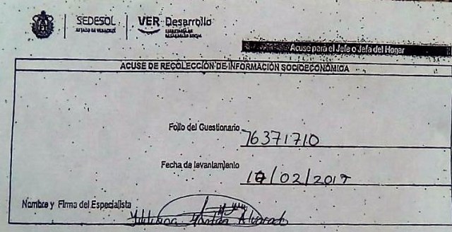 Habitantes de la Ranchoapan fueron coaccionadas a entregar su credencial de elector a cambio de recibir el programa, con la consigna que si no lo entregaban serían dadas de baja del programa de SEDESOL. Hacen un llamado enérgico al Gobernador Miguel Angel Yunes Linares, a que frene la entrega de estos apoyos qué tienen claros tintes políticos para favorecer a los candidatos de la Alianza PAN-PRD en San Andrés Tuxtla.