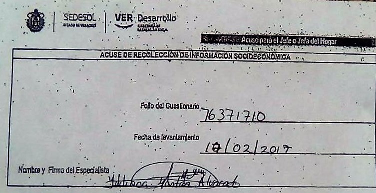 Habitantes de la Ranchoapan fueron coaccionadas a entregar su credencial de elector a cambio de recibir el programa, con la consigna que si no lo entregaban serían dadas de baja del programa de SEDESOL. Hacen un llamado enérgico al Gobernador Miguel Angel Yunes Linares, a que frene la entrega de estos apoyos qué tienen claros tintes políticos para favorecer a los candidatos de la Alianza PAN-PRD en San Andrés Tuxtla.