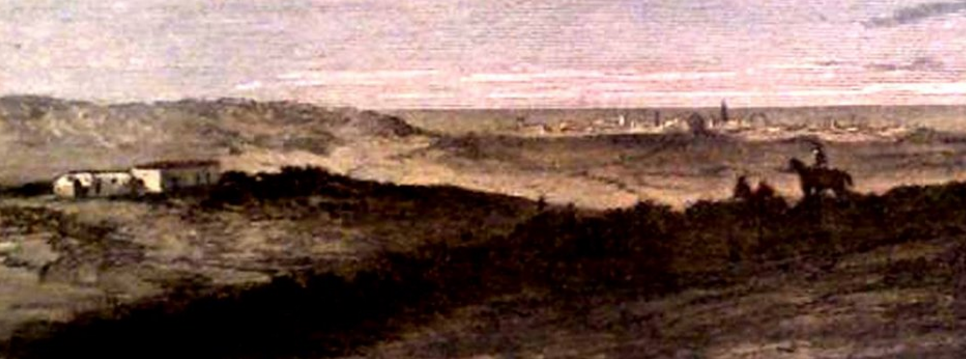 “El día 4 de Marzo, entre una y dos de la tarde, hizo su aparición el enemigo, que había llegado á Medellín desde cinco días ántes, conduciendo en sus carros y bagajes los útiles y artillería para establecer sus baterías; la cortina núm. 5 de «la Gola» lo saludó con una granada de á 68, aceptando el reto que se hacía á la plaza. Durante la noche y el día siguiente acabaron de llegar los pertrechos, y el día 7, al amanecer, una línea blanquizca de un metro ó poco menos de elevación, á la falda de los médanos ya dichos, determinó la posición de las baterías enemigas, resguardadas por una trinchera de sacos á tierra.