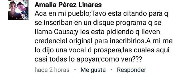 De acuerdo con lo publicado en las redes, los ex funcionarios de la dependencia federal que a nivel estatal ahora es responsable Anilú Ingram Vallines, estarían recorriendo las comunidades del municipio para convocar a las beneficiarias del programa PROSPERA para pedirles que entreguen sus credenciales de elector, para de esa manera impedirles que acudan a votar por otro candidato.
