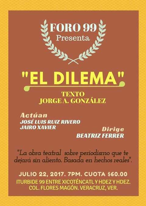 Este sábado 22 de julio, nueva puesta en escena de EL DILEMA, en el puerto de Veracruz