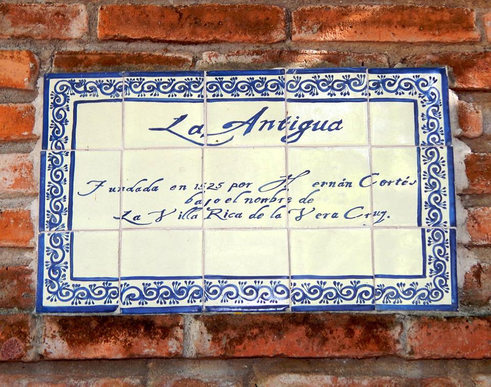 En el actual malecón del pueblo de La Antigua, Veracruz, existe una casona con arcos dobles de ladrillo en su fachada, y desde hace años ostenta una placa formada por azulejos que dice «LA ANTIGUA Fundada en 1525 por Hernán Cortés bajo el nombre de la Villa Rica de la Vera Cruz». Básicamente el texto es correcto en cuanto a la veracidad histórica, si bien, detallando, se puede precisar aun más para mejor conocimiento de la historia del lugar.