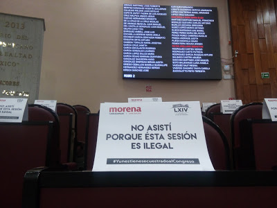 SESIÓN DEL CONGRESO ES ILEGAL. La mayor muestra del poco interés que Sergio Hernández y los diputados al servicio de Miguel Ángel tienen por la legalidad es que la sesión de éste 28 de septiembre de origen era ilegal.
