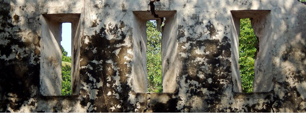 Troneras elevadas en el puesto de guardia del Cuartel de Lanceros de Veracruz en La Antigua, construido a principios del siglo XIX para la Sexta Escuadra de este cuerpo que participó en la Guerra de Independencia (fotografía del equipo EXESCR durante su estudio arquitectónico en diciembre 18 de 2016).