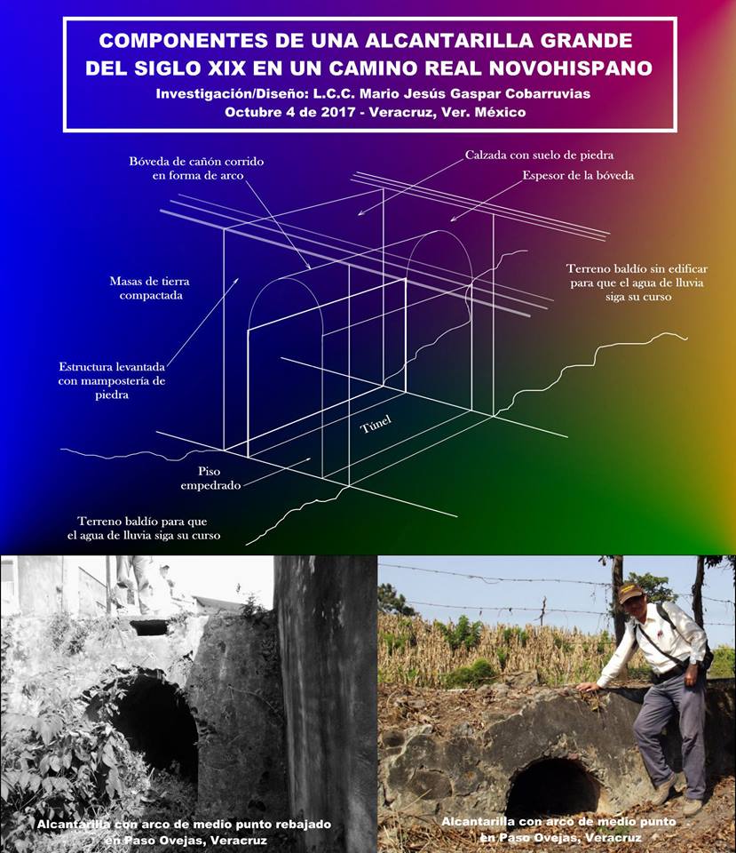 En lo referente a los caminos reales, se puede tomar como ejemplo el construido por el Consulado de Veracruz entre 1803 y 1812, consistente en un «lomo» o elevación sostenida por terraplenes y con pendientes muy suaves para facilitar el paso de carretas en ambas direcciones. En los sitios donde existieran arroyos, llanuras aluviales y cursos de agua violentos pero no permanentes, se construyeron decenas de alcantarillas bajo las calzadas de capas de tierra apisonadas como de las dotadas de empedrados de lajas de piedras de río, calizas o basalto volcánico. Integrándose al camino como puentecillos solitarios o como parte de los grandes muros de contención en las barrancas. Estas obras de fábrica se hicieron a cal y canto, con pisos empedrados y con forma de puentecillos con arcos de medio punto las menores y arco de medio punto rebajado las mayores. Sus arcos están formados por dóvelas a base de ladrillos, muy similares a las de las estructuras romanas, de las que son una reminiscencia milenaria.