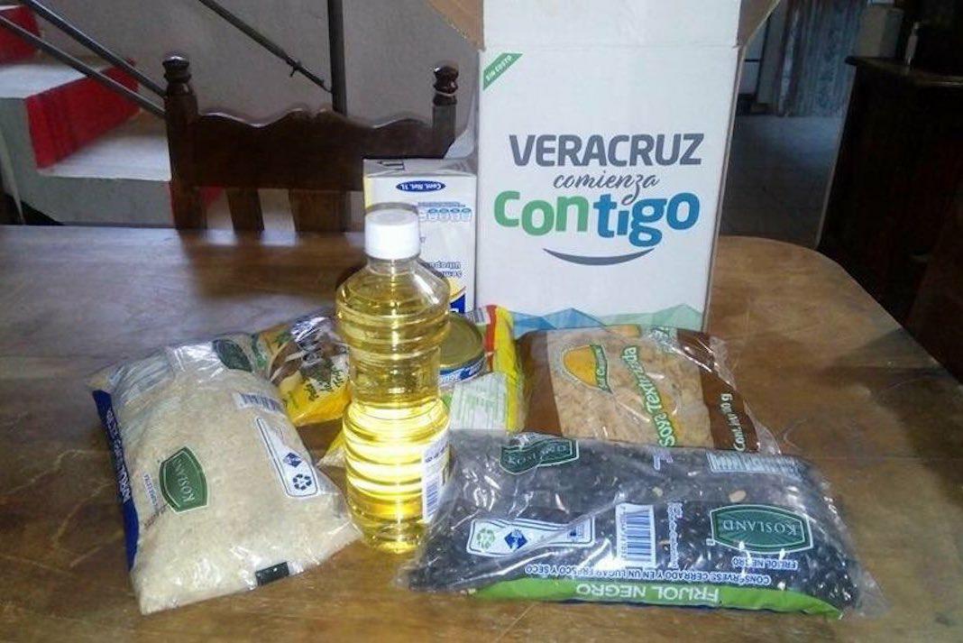 ¿Acaso el gobierno de Veracruz entrega despensas en las que ni siquiera considera un poco de leche para los infantes?.