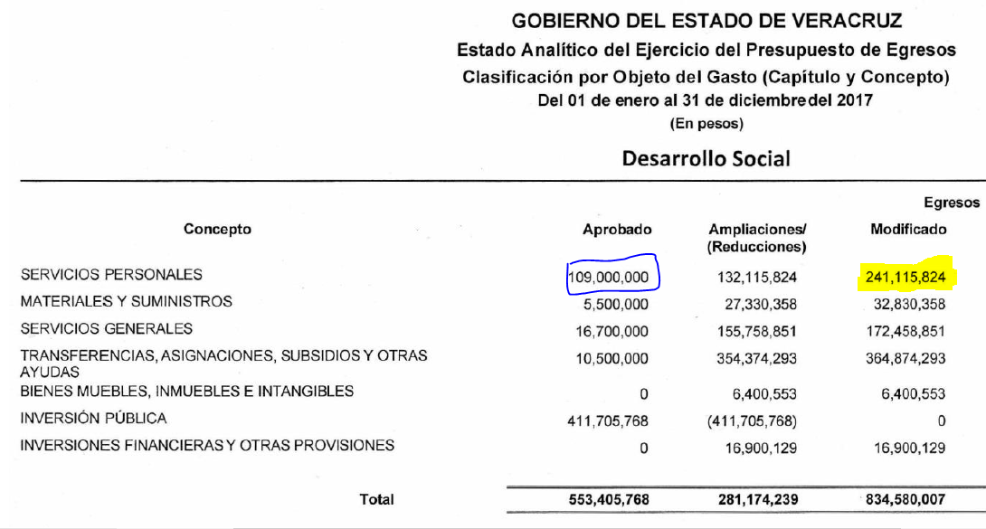 De hecho la Sedesol tuvo un incremento de 132 millones sobre el presupuesto original que debía ejercer para servicios personales. Algo así como un 120 por ciento más.