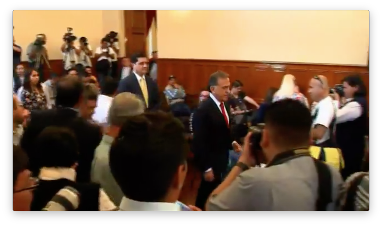Miguel Ángel hizo el anuncio en Palacio de Gobierno, e invito a la prensa para tener público, para inspirarse, para no hablar sólo ante un micrófono.
