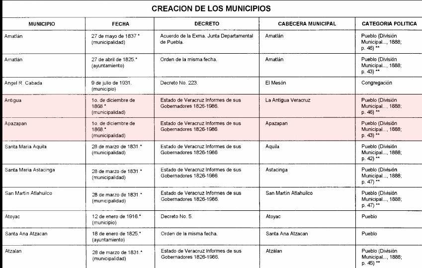 CREACIÓN DE LOS MUNICIPIOS, Instituto Nacional de Estadística y Geografía (INEGI):