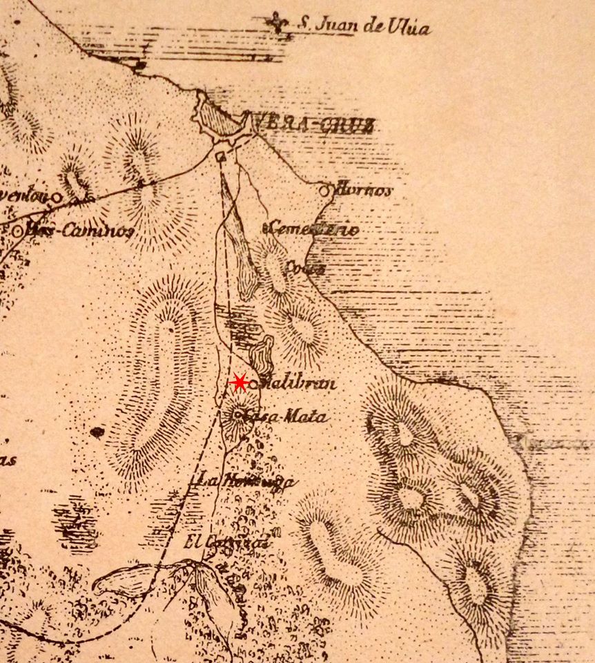 Interesante el mapa. Allí veo el punto Dos Caminos distante de la ciudad amurallada. Y la ilustración contiene las rayas que simbolizan las cadenas de médanos. Entre Dos Caminos y la ciudad amurallada va una línea que cruza la cadena dicha. Ahí en ese punto elevado está mi domicilio y el de ustedes por supuesto. La línea negra podría ser la actual calle de Hernán Cortés.