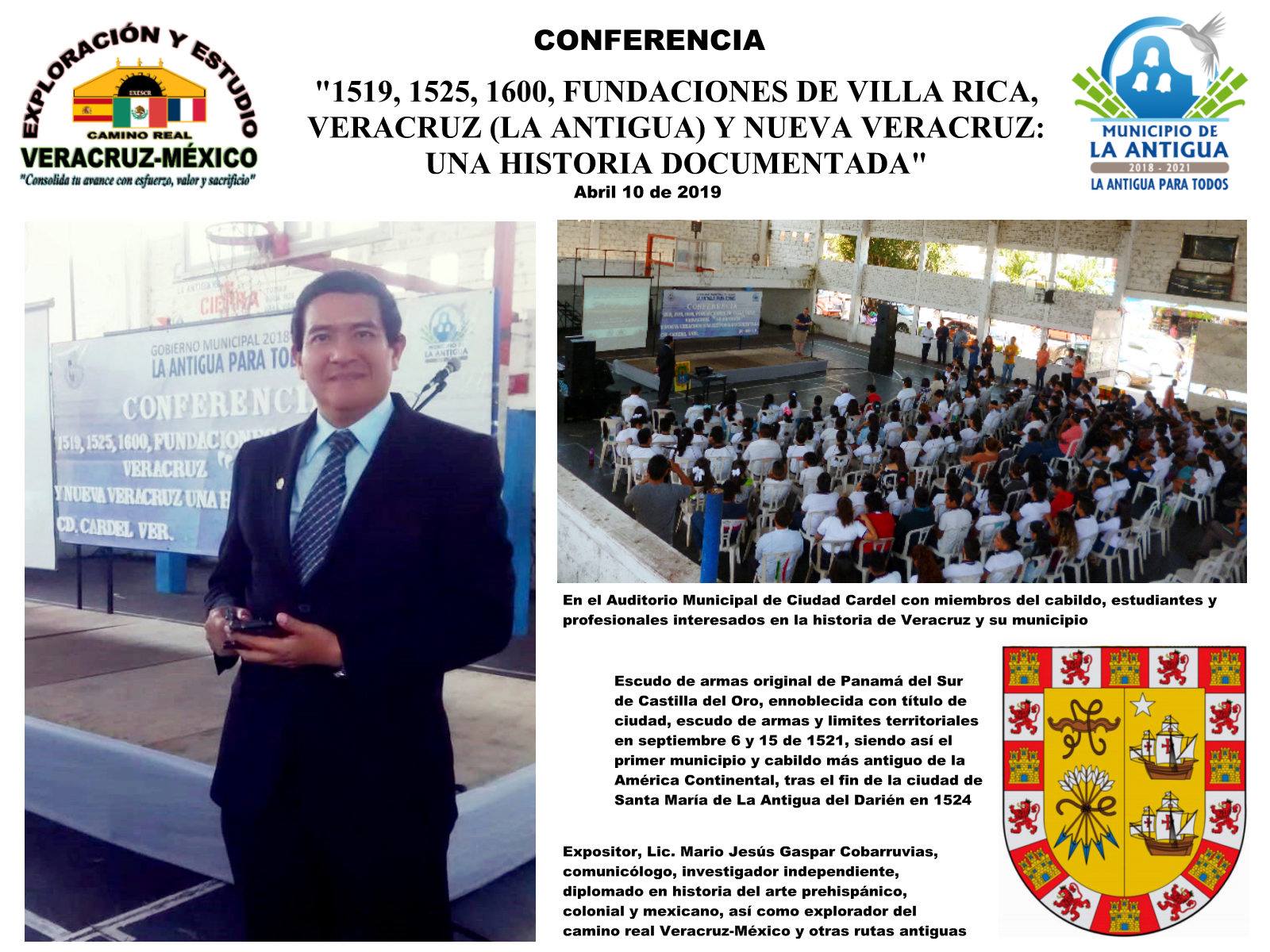 Ayer 10 de abril de 2019 se llevó a cabo esta conferencia que tuvo buena aceptación en la ciudad José Cardel, a pesar de algunos inconvenientes por la iluminación, el calor del día y un intento que se hizo por cancelar la realización de este evento. Dado que es una exposición bastante especializada totalmente fundamentada por fuentes históricas (de ahí su nombre: una historia documentada), me centré en los aspectos fundacionales de la historia de estas tres ciudades entre 1519 y 1868, así como los antecedentes previos a 1519 y los posteriores a 1609.