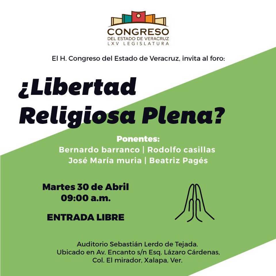 El evento se llevará a cabo en el Auditorio «Sebastián Lerdo de Tejada» de la Legislatura del Estado de Veracruz, ubicado en la colonia Encanto esquina con Lázaro Cárdens, en la colonia el Mirador, a las nueve de la mañana. Será interesante conocer las ponencias de los participantes en el Foro que sin duda es controversial, dados los antecedentes históricos del papel de las iglesias y su relación con el poder, en nuestro país.