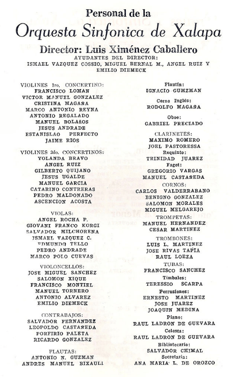 Rivalizaba la OSX con la Sinfónica Nacional y por la presencia, en sus conciertos, de figuras como el violinista de origen polaco Henryk Szeryng, al pianista chileno Claudio Arrau, el pianista Carlos Okhuysen, el violinista Higinio Ruvalcaba, el pianista ruso Alexander Uninsky, asi como nuevas figuras de la talla del tubista Francisco Sánchez, el flautista Antonio N. Guzmán, el clarinetista Máximo Romero.