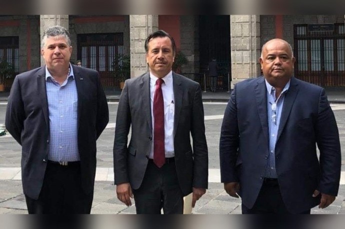 Y muy quitados de la pena, Cuitláhuac, Éric Cisneros y Hugo Gutiérrez Maldonado posan como niños escolares en un pasillo del Palacio Nacional, creyendo que han convertido a Veracruz en un paraíso electoral de MORENA.