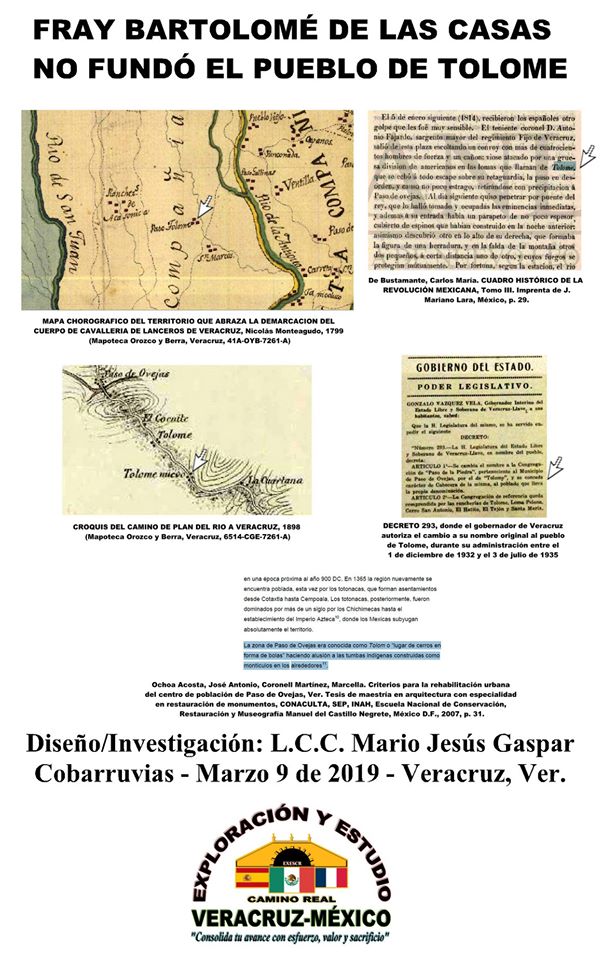 El paso del ilustre domínico por la ciudad de Veracruz en 1531-1532 y 1547, ha sido utilizado, como en otros tantos casos, para crear una tradición mal fundamentada pero fácil de creer, que le atribuya una fundación para la cual no estaba autorizado ni estaba dentro de su jurisdicción religiosa ni mucho menos, en su área de movilidad geográfica. De las Casas, como muchos viajeros que llegaron a apenas 10 años de la caída de Tenochtitlán, tuvo que dirigirse a alguna de las escasas ciudades habitadas por españoles, siendo su destino, como lo fue el de los franciscanos en 1524, la Ciudad de México. El camino real entre la costa y la capital apenas estaba naciendo con las ordenes de Hernán Cortés y su circuito desde Ulúa, iba a la ciudad de Veracruz, después a Rinconada, Plan del Río, Xalapa y por el camino de las ventas hacia Perote, Puebla, Tlaxcala y México. No había un camino real por la región de Paso de Ovejas y Tolome, habrá que esperar hasta 1803, en que se inició su construcción por el Consulado de Veracruz y hasta 1809 para que estando terminados sus calzadas, muros de contención, puentes y alcantarillas, estuviese dispuesto para el tráfico carretero.