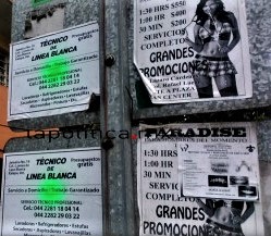 Lo mismo se puede uno topar con publicidad de bailes, ferias, conciertos, que ofrecimientos de empleos y hasta de promocionales de casas de citas, en donde se ofrecen todo tipo de servicios sexuales.