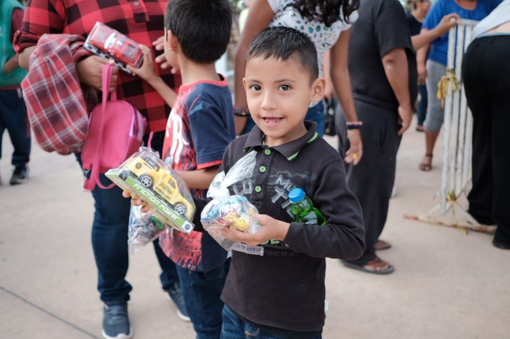 Los niños boqueños congregados en un evento ya tradicional que se realiza cada año por parte del ayuntamiento que preside Humberto Alonso Morelli, junto con su esposa Karla Robles, presidenta del DIF Municipal, se unen esfuerzos para dar a la infancia un momento inolvidable con la llegada de los Reyes Magos en estas fechas.