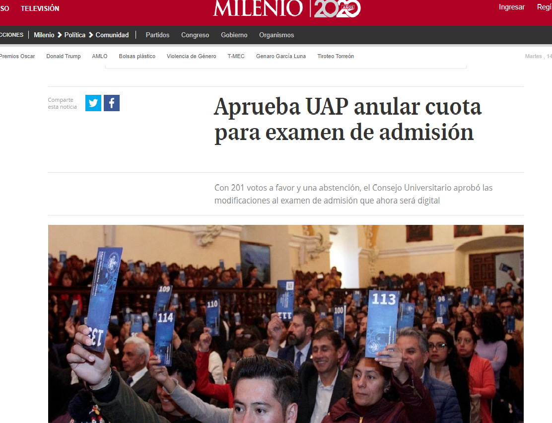 Como dato anecdótico, la Benemérita Universidad Autónoma de Puebla parecía enfilar a ser una de las primeras universidades públicas del país que se sumaba al modelo de la nueva escuela de educación superior que propone el gobierno de Andrés Manuel López Obrador, que aspira a la gratuidad de todos los servicios universitarios. La BUAP aprobó en el reciente Consejo Universitario que ya no cobraría el examen de admisión y que, paulatinamente, irían disminuyendo y desapareciendo los demás cobros universitarios. El rector, Alfonso Esparza Ortiz divulgó con satisfacción la medida alineada a los nuevos tiempos universitarios. Hoy, ese mismo rector, se negó a asistir este martes 14 de enero a la reunión propuesta por el titular de la Auditoría Superior del Estado de Puebla, para no convalidar la revisión anticonstitucional a la cuenta pública de 2019., asumiendo una postura de franca rebeldía contra el gobierno poblano.