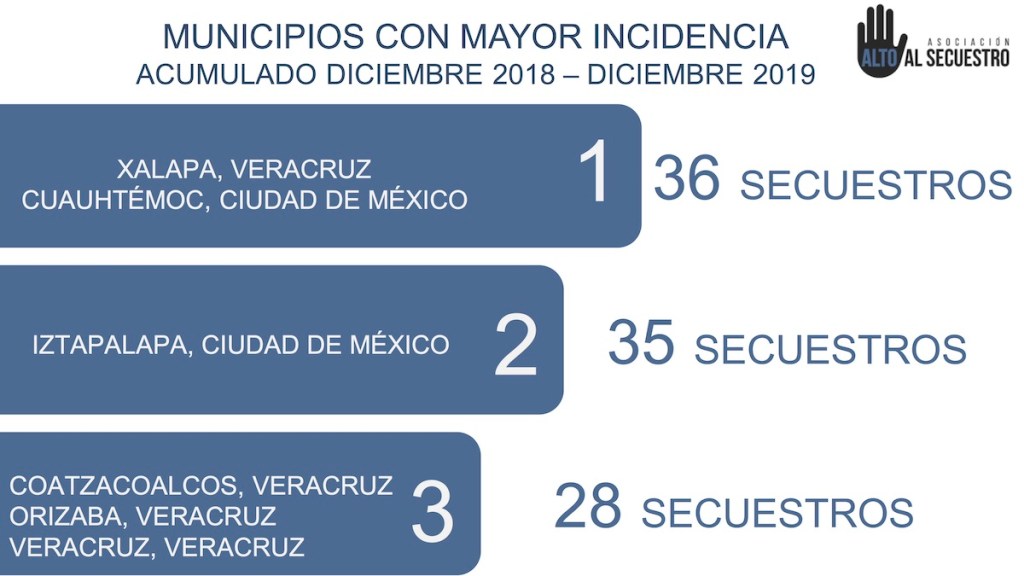 La organización “Alto al Secuestro” (que realiza un seguimiento de éste delito en todo el país) documentó que en Veracruz, durante 2019 se realizaron 471 raptos, mientras que la Fiscalía sólo reportó 298 delitos de éste tipo.