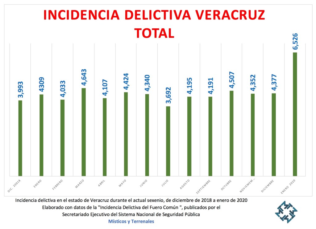 Esto es, la incidencia criminal en Veracruz ha crecido sostenidamente durante el actual sexenio.