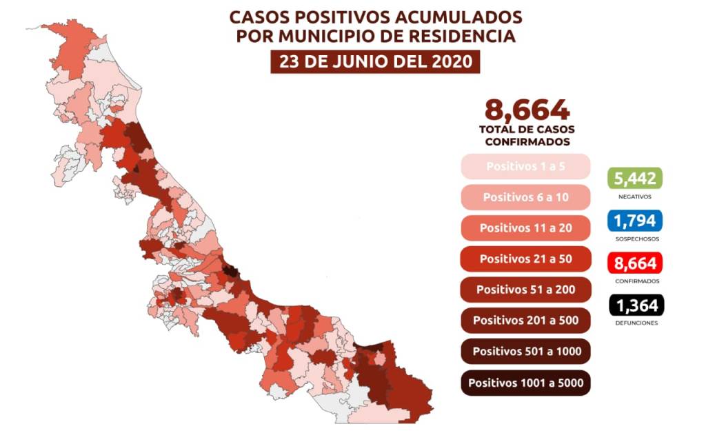 En el estado, al cierre del 23 de junio se tenía 8 mil 664 casos anotados de Covid-19, los cuales habían provocado 1 mil 364 defunciones.